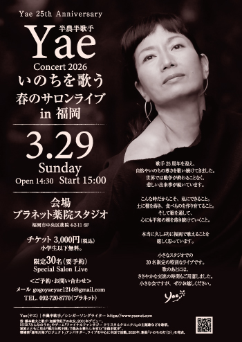 2026.3.29(土)【福岡・中央区】Yae 25th Anniversary「いのちを歌う 春のサロンライブ in 福岡」