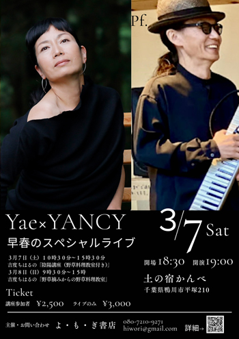 2026.3.7(土)【千葉・鴨川/土の宿かんべ】Yae × YANCY 早春のスペシャルライブ
