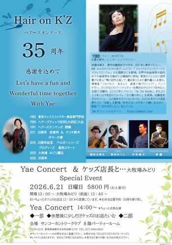 2026.6.21(日)【群馬・高崎市】Hair on K’Z 35周年記念